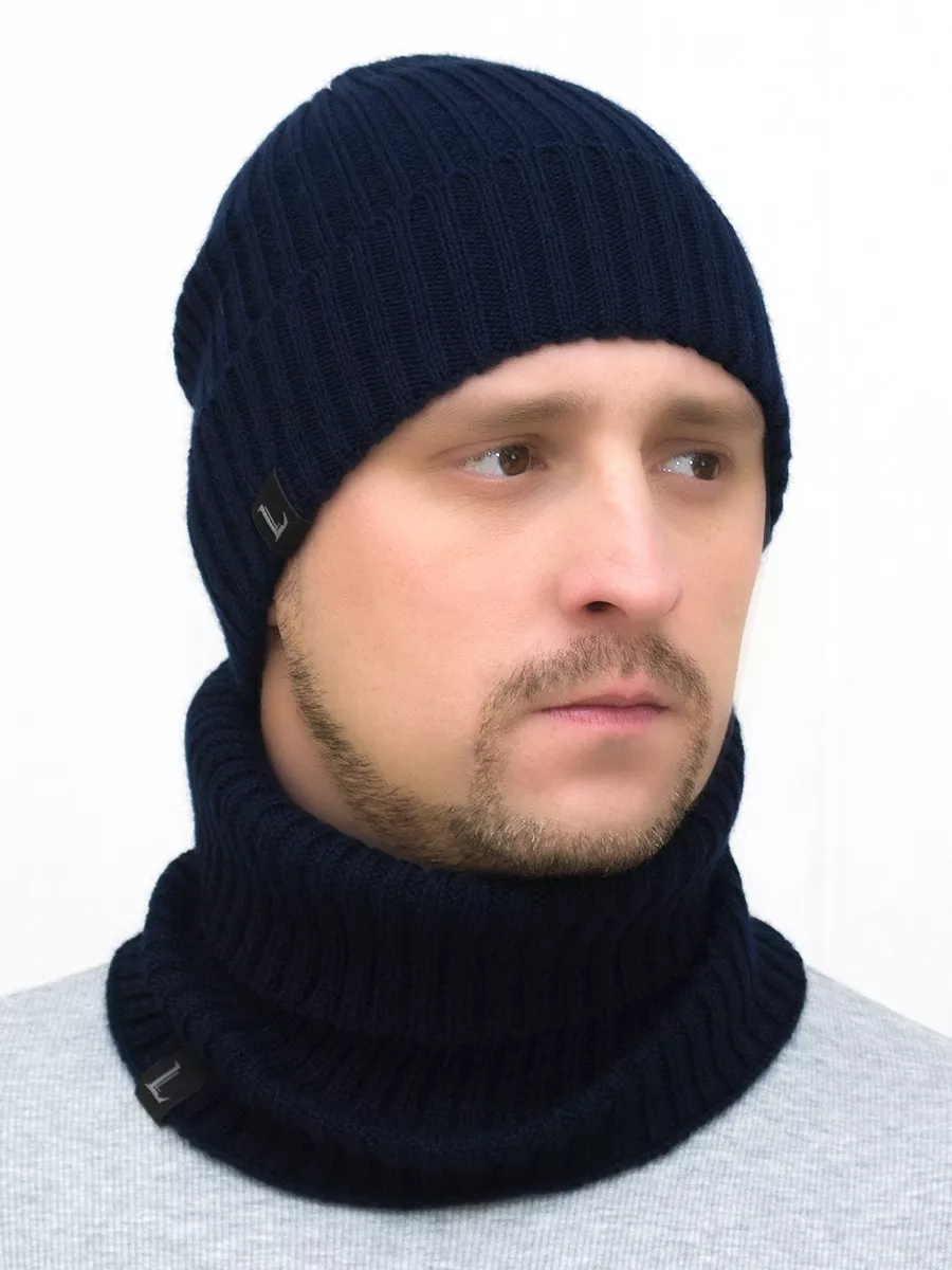 Комплект мужской шапка+снуд Манчестер (Цвет темно-синий), размер 52-54; 54-56; 56-58, хлопок 95%