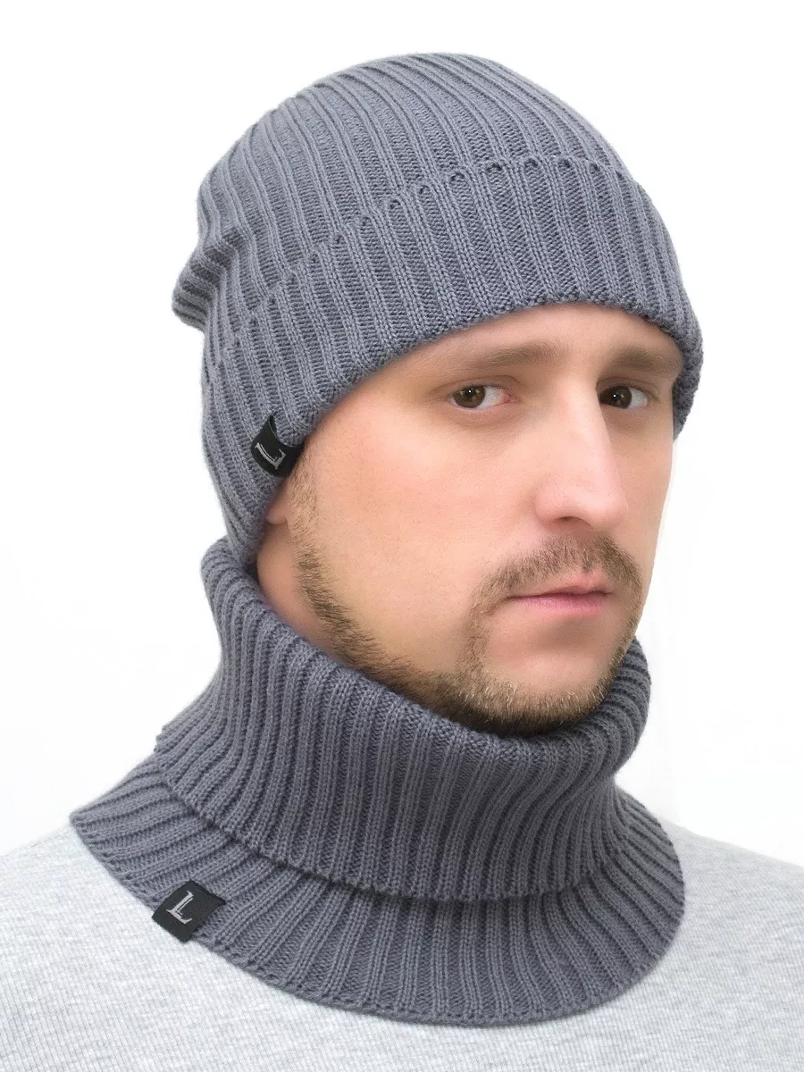 Комплект весенний-осенний мужской шапка+снуд Ники (Цвет серый), размер 54-58