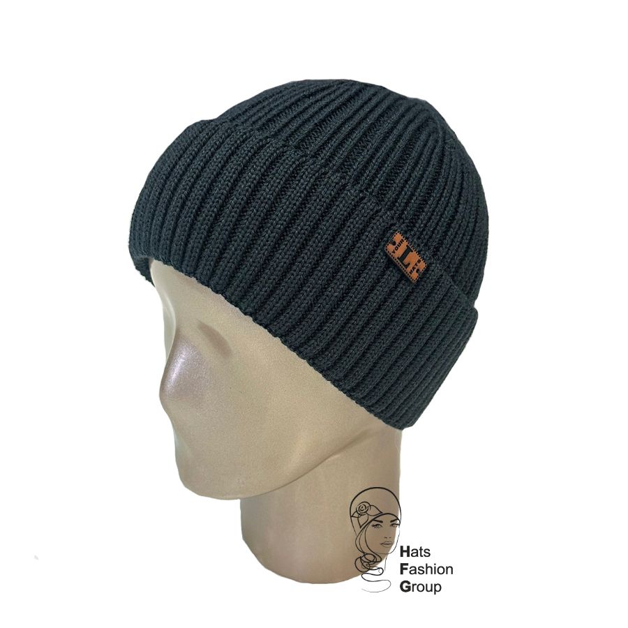 Хлопковая одинарная шапка с отворотом. Сбоку шапка украшена фирменной кожаной шильдой. Длина изделия - 20 см, отворот - 8 см. Мужская хлопковая шапка идеально подходит для демисезонного периода. Эта тонкая вязаная шапка с отворотом станет отличным дополнением к вашему гардеробу, обеспечивая комфорт и тепло в осенние и весенние дни.