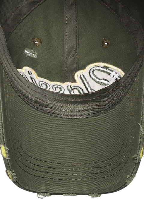 Бейсболка 6-клинка изготовлена из хлопковой ткани с эффектом старения (с рваными краями по козырьку). Передняя часть модели мягкая.