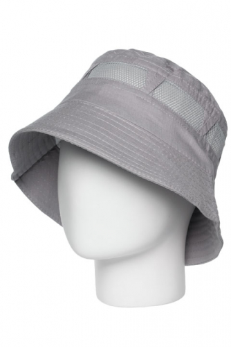 Панама выполнена из легкой ткани. Регулятором размера служит лента-затяжка по внутреннему краю панамы.