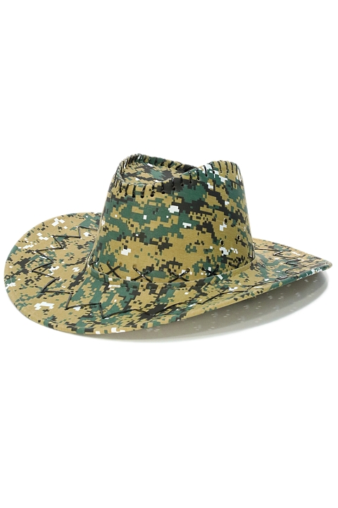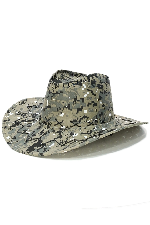 Шляпа легкая выполнена из плотного материала на мягкой клеевой основе. Высота тульи 12 см, ширина поля 9 см. Модель дополнена шнурком с фиксатором.