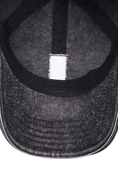Бейсболка 6-клинка выполнена из "вареной" джинсовой ткани с мягкой передней частью и с однотонным вшивным козырьком. Размер регулируется металлической застежкой.