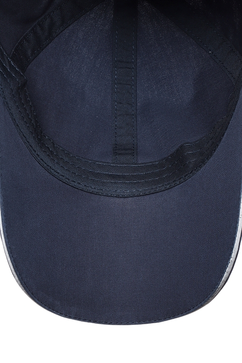 Бейсболка из легкого хлопка с классическим изогнутым козырьком и с светоотражающим вшивным кантом. Передняя часть модели мягкая. Размер регулируется металлической застежкой.