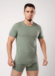 Футболка мужская из трикотажного полотна, с круглым вырезом горловины и коротким рукавом. Материал эластичен, не сковывает движений, благодаря хлопку в составе обладает дышащими свойствами.