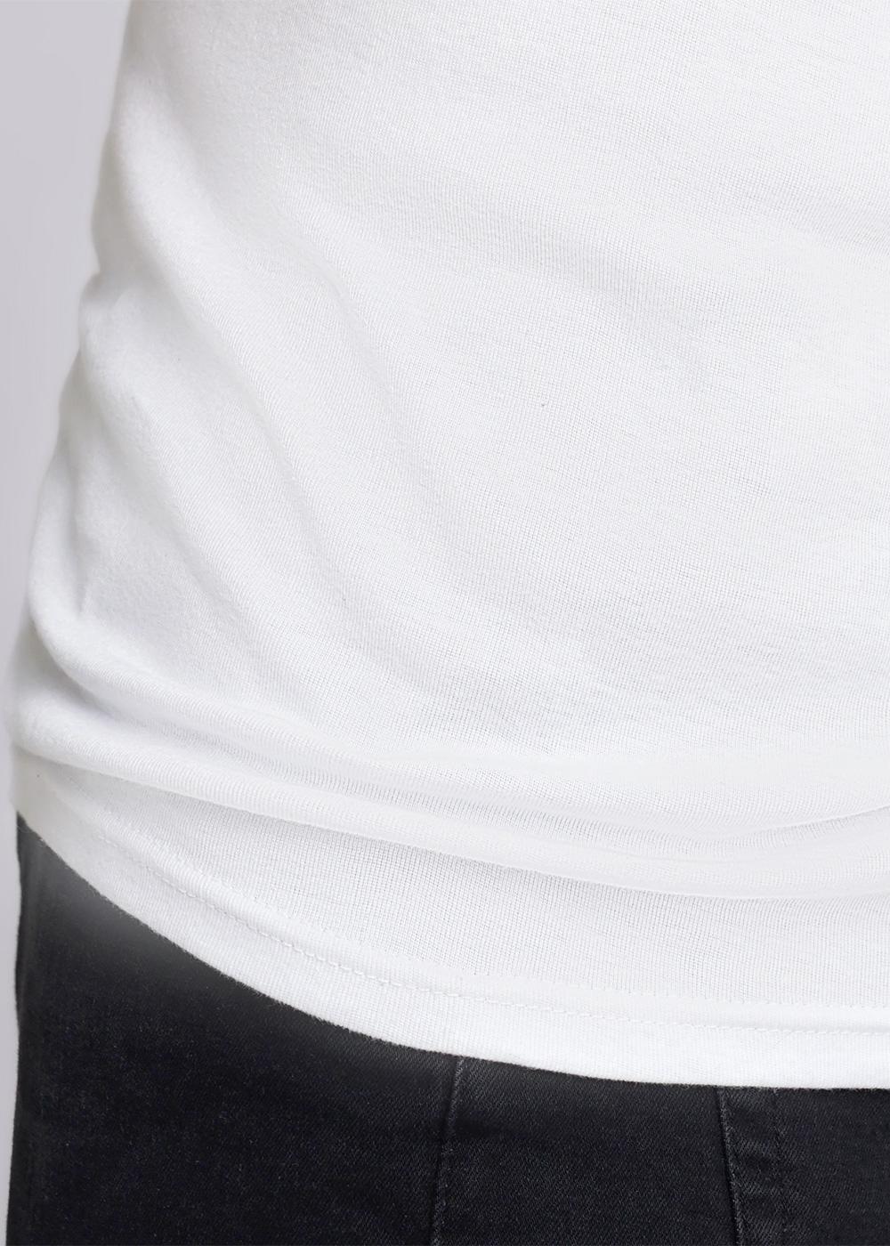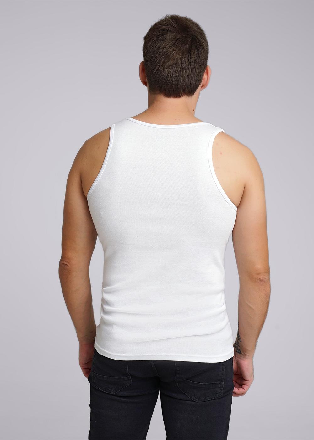 Майка классической посадки, без боковых швов, круглый вырез горловины средней глубины. Срезы пройм и горловины обработаны окантовкой. На детали спинки с изнаночной стороны имиджевая тампонная печать. Плотность:185-190 гр/м2