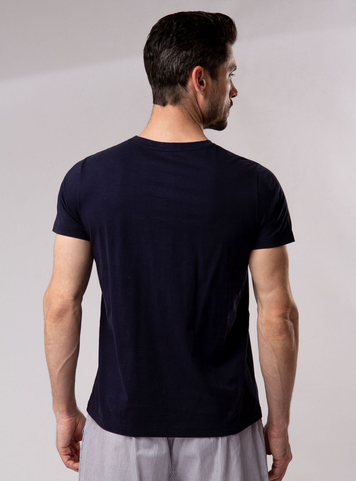 Мужская футболка темно-синего цвета из мерсеризованного хлопка позволяет коже дышать и чувствовать себя комфортно при ношении. Свободный крой не стесняет движений и обеспечивает максимальную свободу. Данное изделие является универсальным и подходящим для повседневного использования.