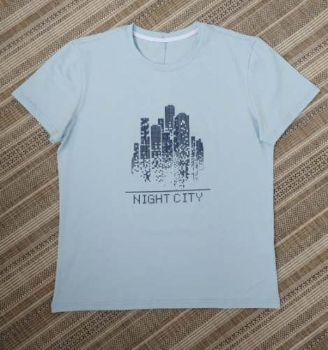 Оптовая продажа. Футболка мужская из хлопкового полотна, свободного силуэта, с короткими рукавами, округлым вырезом горловины, однотонная.