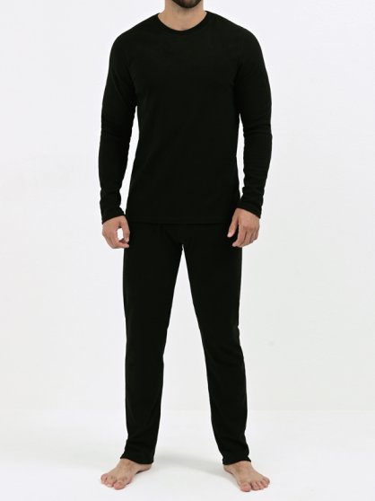 Оптовая продажа. Комплект мужского термобелья из толстого флиса. Фуфайка с длинным рукавом, округлым вырезом горловины. Брюки прямые, без манжетов.
