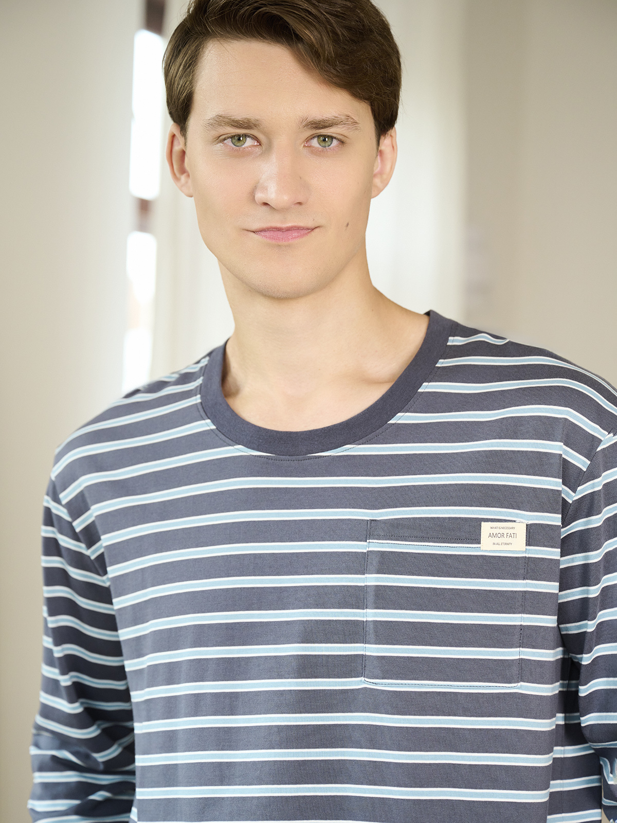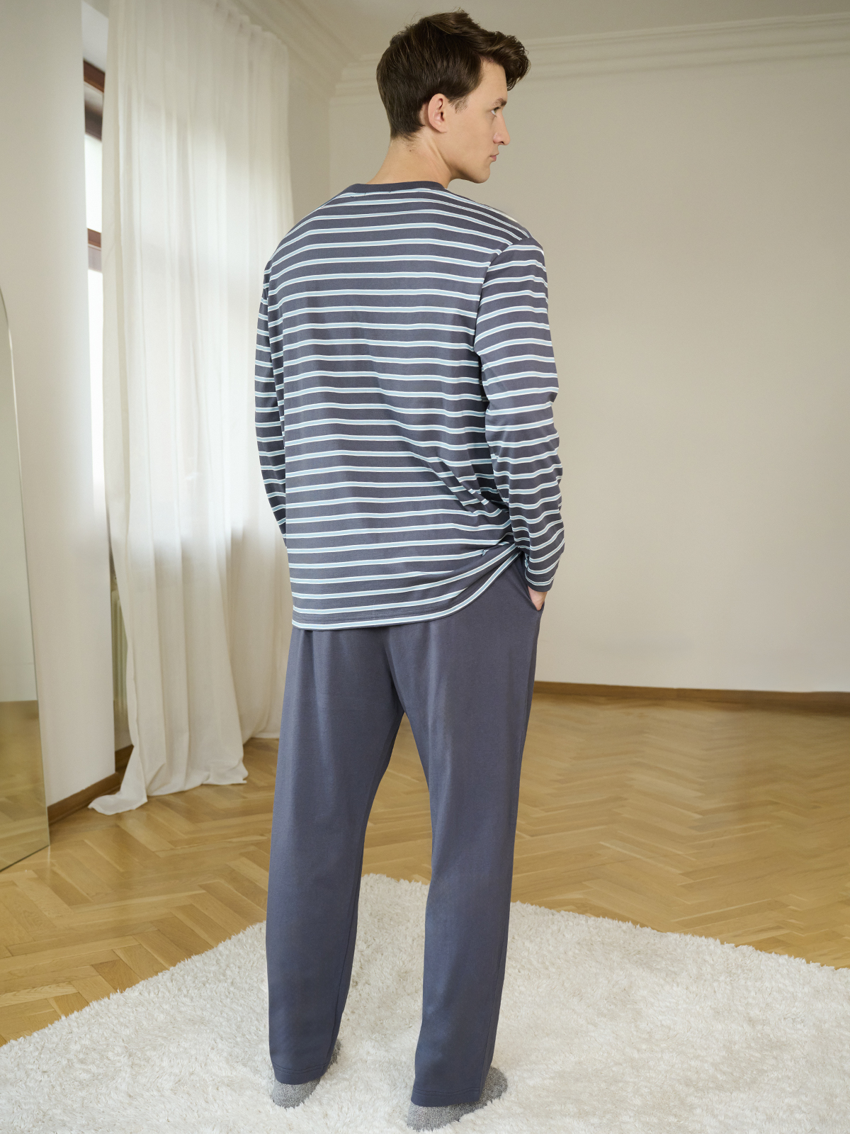 Пижама состоит из лонгслива с длинными рукавами и свободных брюк — классический набор для комфортного отдыха. Выполнена из 100% хлопка: не прилипает к телу, «дышит», не вызывает раздражения.