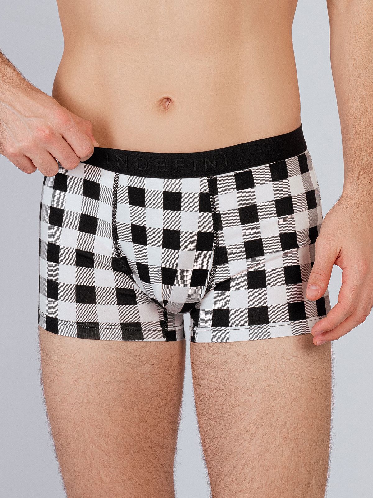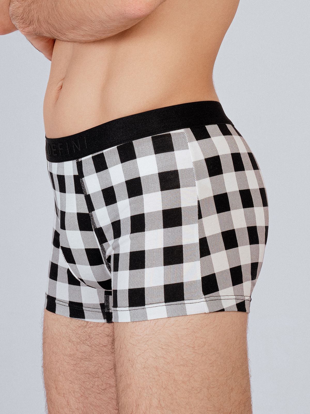 Трусы боксеры мужские выполнены с принтом в черно-белую клетку.