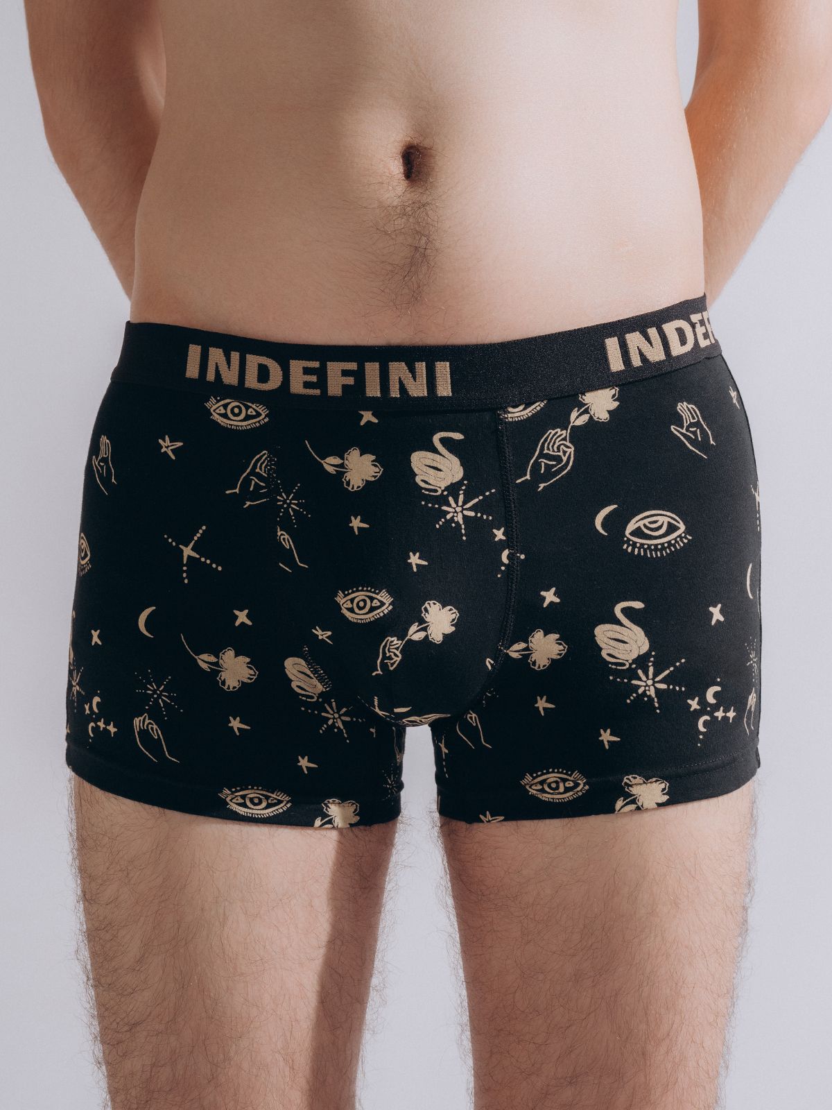 Мужские трусы боксеры 4050MUF бренда Indefini, изготовленные из хлопкового материала, выполнены в черном цвете.