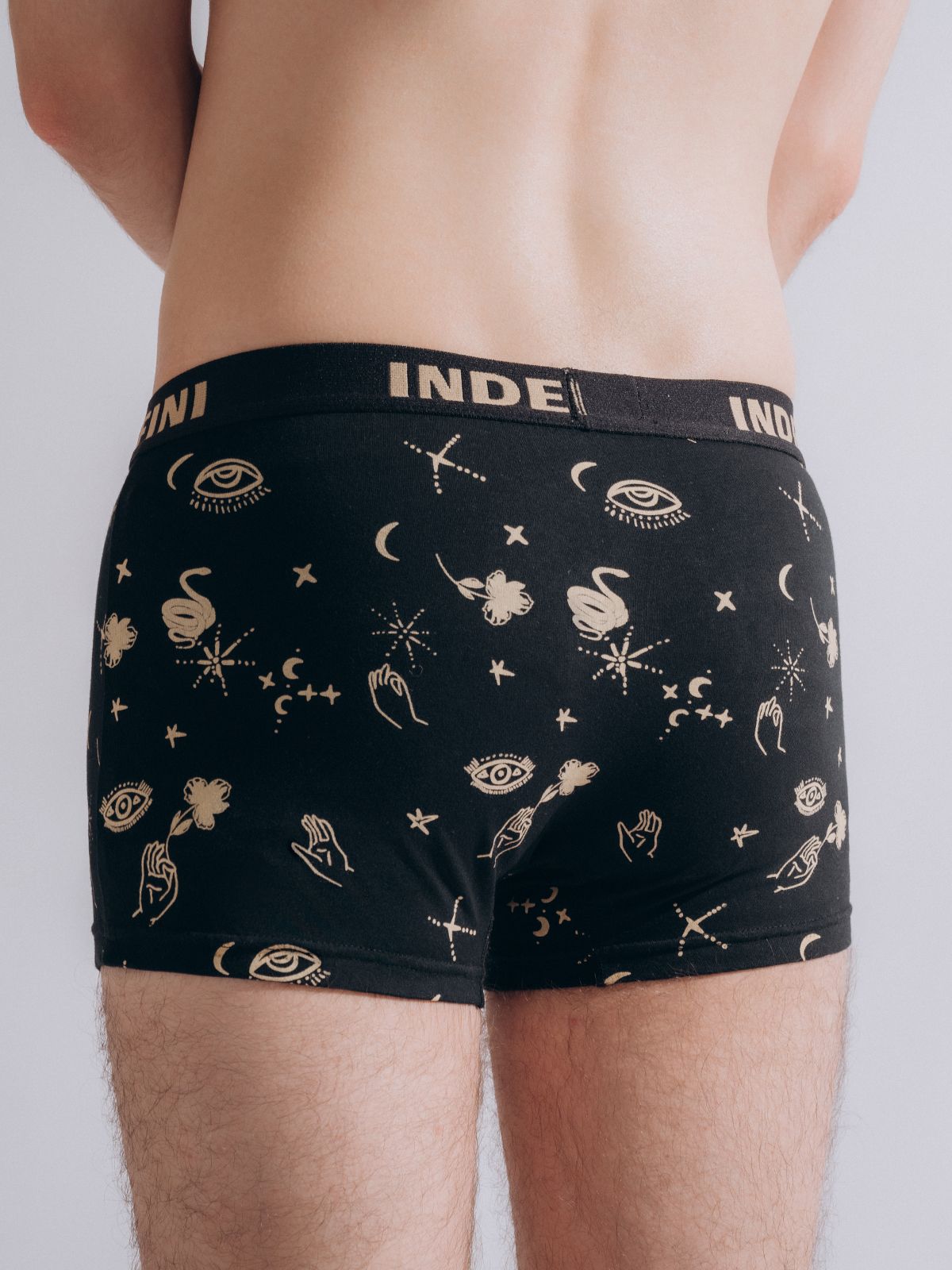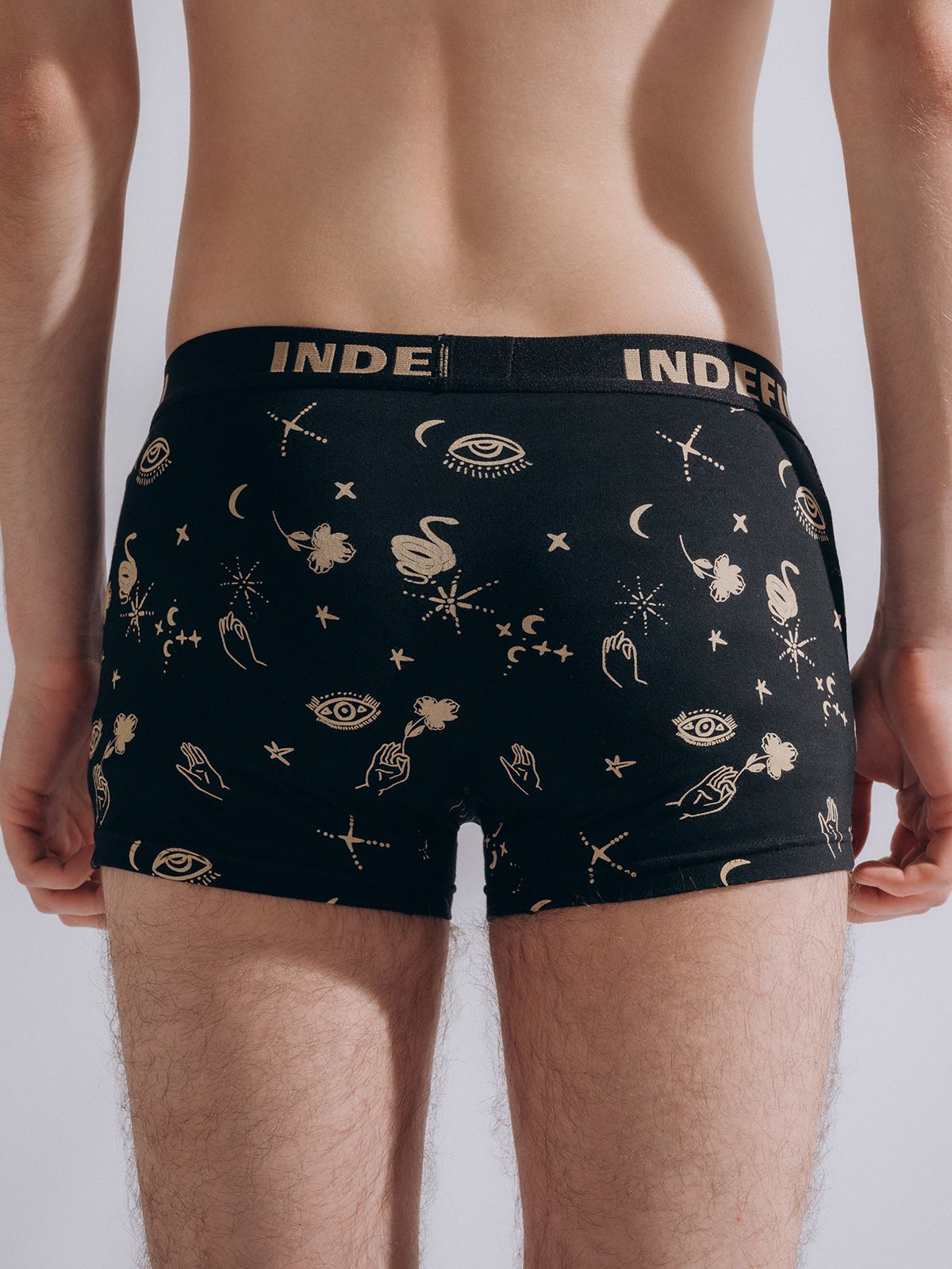 Украшением мужских трусов боксеров является принт с изображением мистических символов.