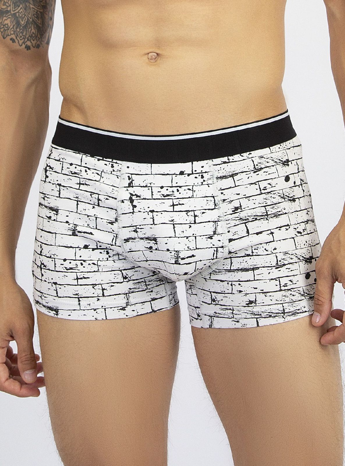 Универсальные мужские трусы боксеры с графичным принтом. Сшиты из мягкого бамбукового трикотажа. Эластичный пояс держит форму и не давит в течение дня. Анатомичный крой обеспечивает плотное, аккуратное прилегание. Плоские швы не ощутимы на коже. Практичный вариант на каждый день.