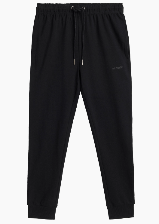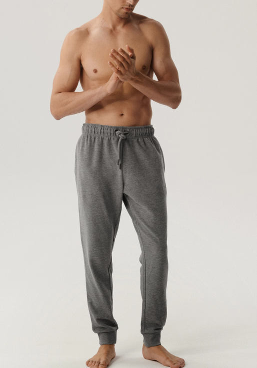 Мужские тренировочные брюки Atlantic цвета темно-серый меланж из коллекции Loungewear — это универсальная модель для спорта и повседневной носки. Модель HMB-001 выполнена из высококачественного материала (65% хлопок, 35% вискоза), обработанного по технологии "Peach Effect" для создания мягкой бархатистой поверхности. Свободный крой и эластичный пояс с завязками обеспечивают идеальную посадку и индивидуальную регулировку. Практичные боковые карманы и резинка внизу штанин добавляют удобства во время тренировок и прогулок.