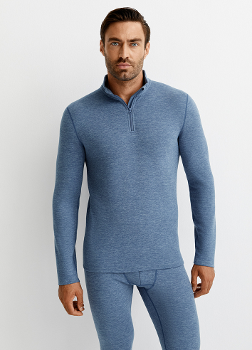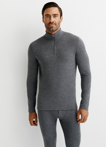 Облегающий мужской лонгслив модель "Термо" с воротником – стойкой на молнии, длинным рукавом и терморегулирующим эффектом.