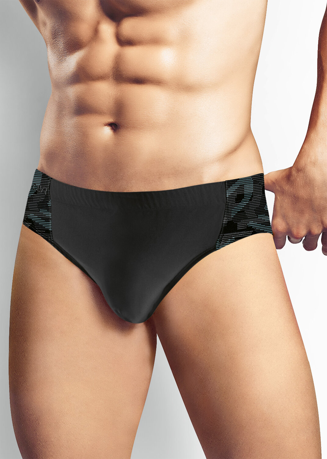 Купальные плавки комфортной посадки выполнены из однотонного полотна и оформлены цветными вставками. Изделие дополнено стильным имиджевым принтом и шнуром с наконечниками