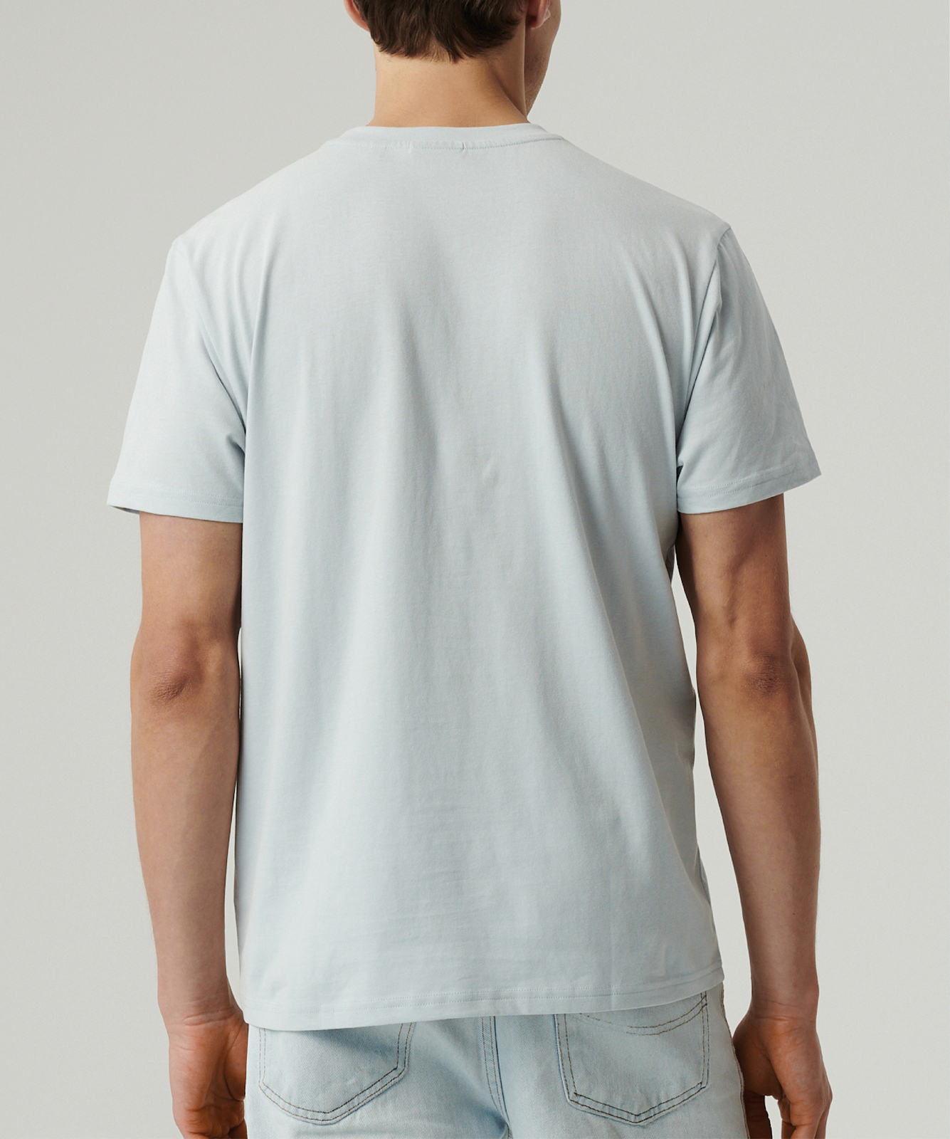 Классический фасон, круглый вырез у горловины, короткие рукава. Изготовлена из хлопка высочайшего качества с бархатистым эффектом «Peach Effect».
