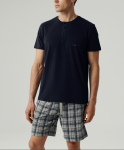Мужская пижама Atlantic NMP-386 голубого и темно-синего цветов из коллекции Homewear - стильный комплект из футболки и шорт для комфортного отдыха и повседневной носки. Комплект изготовлен из 100% хлопка с технологией "вычесывания" для повышенной прочности и максимального комфорта. Шорты с оригинальным лунным принтом дополнены эластичным поясом на завязках и боковыми карманами, футболка с круглым вырезом легко сочетается с джинсами или спортивной одеждой. Доступны в различных расцветках: голубая футболка с темно-синими шортами, голубая с графитовыми. Натуральный хлопок обеспечивает воздухопроницаемость, отличное влагопоглощение и сохранение формы после стирок. Размерная сетка от S до 4XL, стильная упаковка делает комплект идеальным подарком для мужчин любого возраста.