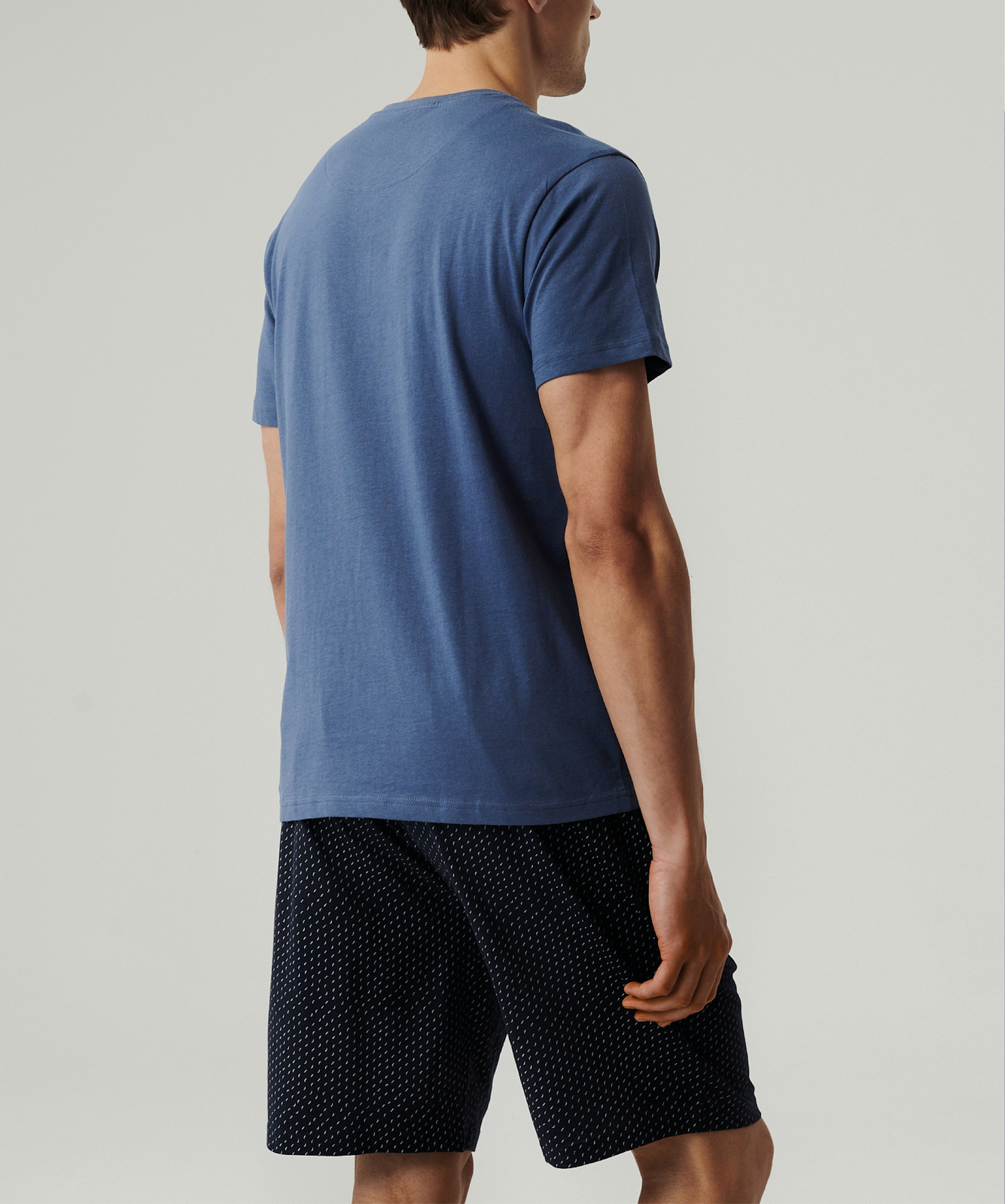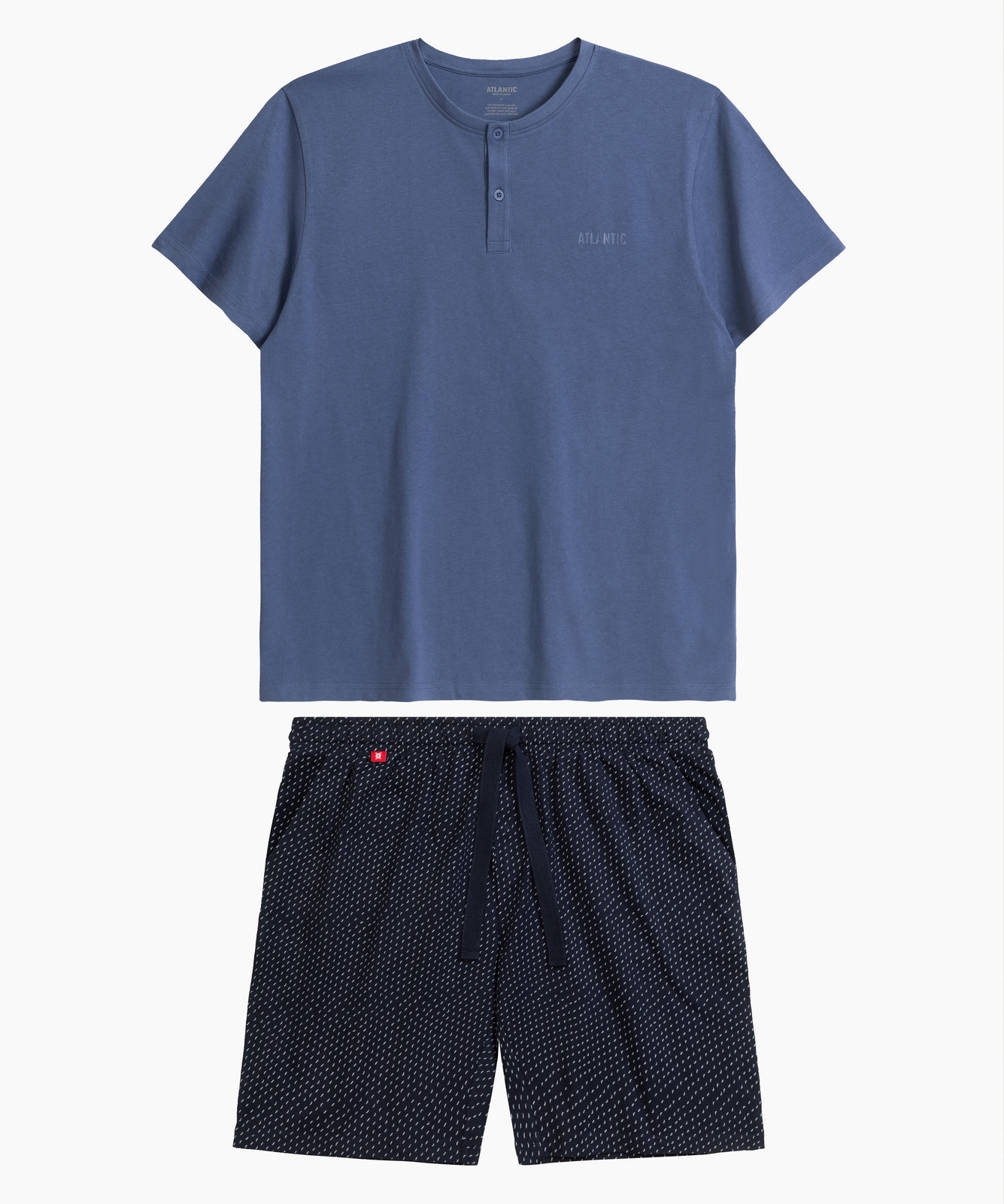 Мужская пижама Atlantic NMP-386 голубого и темно-синего цветов из коллекции Homewear - стильный комплект из футболки и шорт для комфортного отдыха и повседневной носки. Комплект изготовлен из 100% хлопка с технологией "вычесывания" для повышенной прочности и максимального комфорта. Шорты с оригинальным лунным принтом дополнены эластичным поясом на завязках и боковыми карманами, футболка с круглым вырезом легко сочетается с джинсами или спортивной одеждой. Доступны в различных расцветках: голубая футболка с темно-синими шортами, голубая с графитовыми. Натуральный хлопок обеспечивает воздухопроницаемость, отличное влагопоглощение и сохранение формы после стирок. Размерная сетка от S до 4XL, стильная упаковка делает комплект идеальным подарком для мужчин любого возраста.