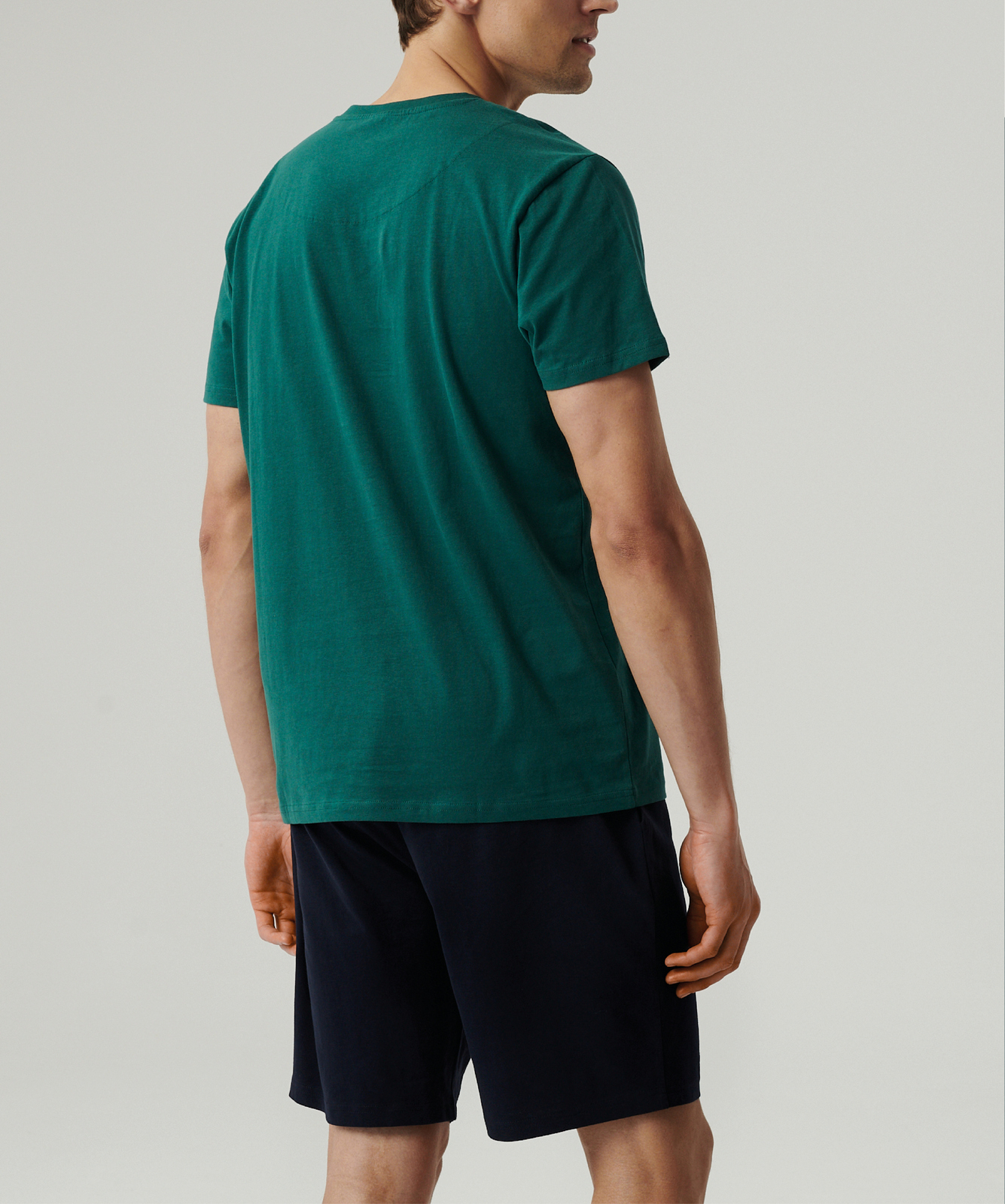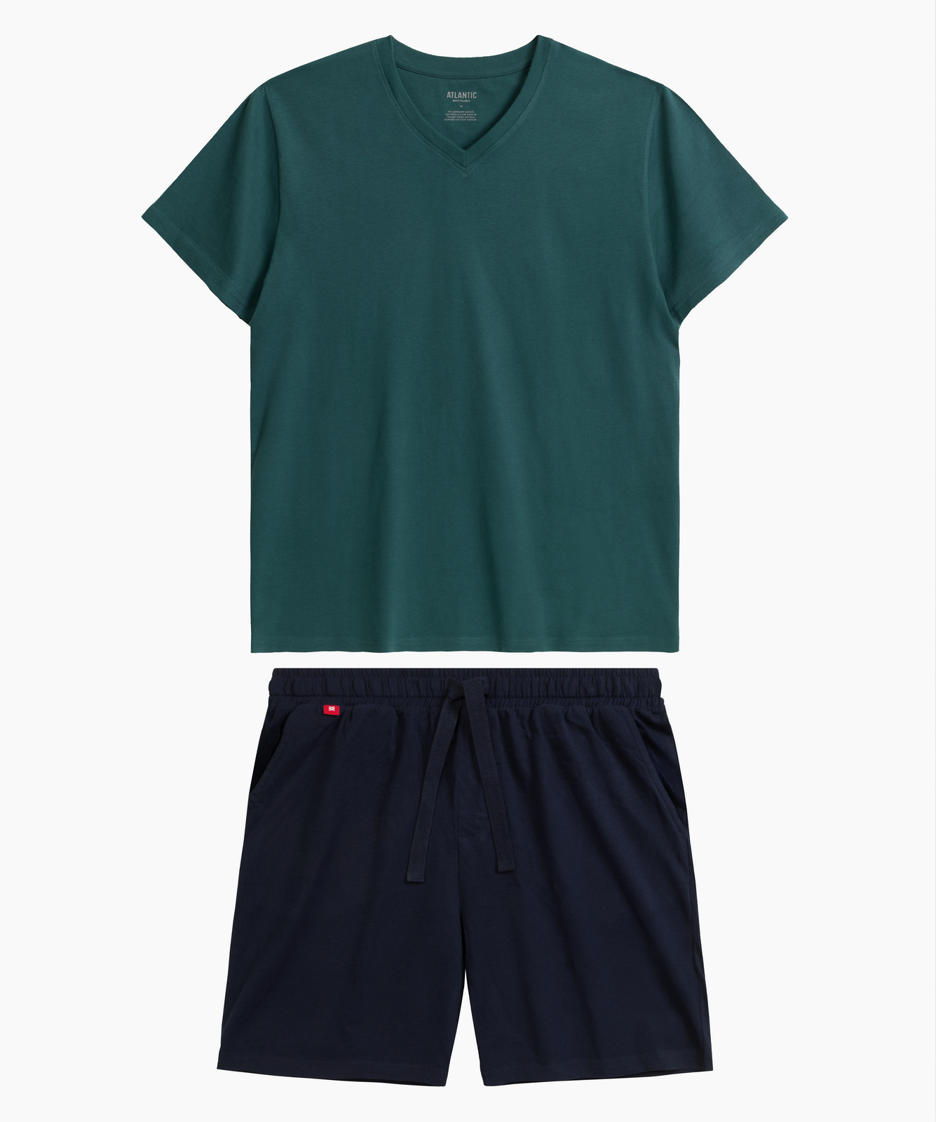Мужская пижама Atlantic NMP-379E изумрудного и темно-синего цветов из коллекции Homewear - стильный комплект из футболки и шорт для комфортного отдыха и повседневной носки. Комплект изготовлен из 100% хлопка с технологией "вычесывания" хлопка для повышенной прочности и эффектом "Peach Effect", создающим бархатистую поверхность для максимального комфорта. Шорты с классическим кроем дополнены эластичным поясом на завязках и боковыми карманами, футболка с V-образным вырезом легко сочетается с джинсами или спортивной одеждой. Доступны в различных расцветках: изумрудная футболка с темно-синими шортами, голубая с графитовыми, коралловая с темно-синими. Натуральный хлопок обеспечивает воздухопроницаемость, отличное влагопоглощение и сохранение формы после стирок. Размерная сетка от S до 4XL, стильная упаковка делает комплект идеальным подарком для мужчин любого возраста.