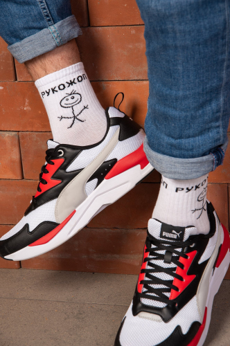 Оригинальная надпись — классный акцент в вашем повседневном образе! В таких носках вы не останетесь незамеченным. Пусть мир оценит вашу искренность и харизму.