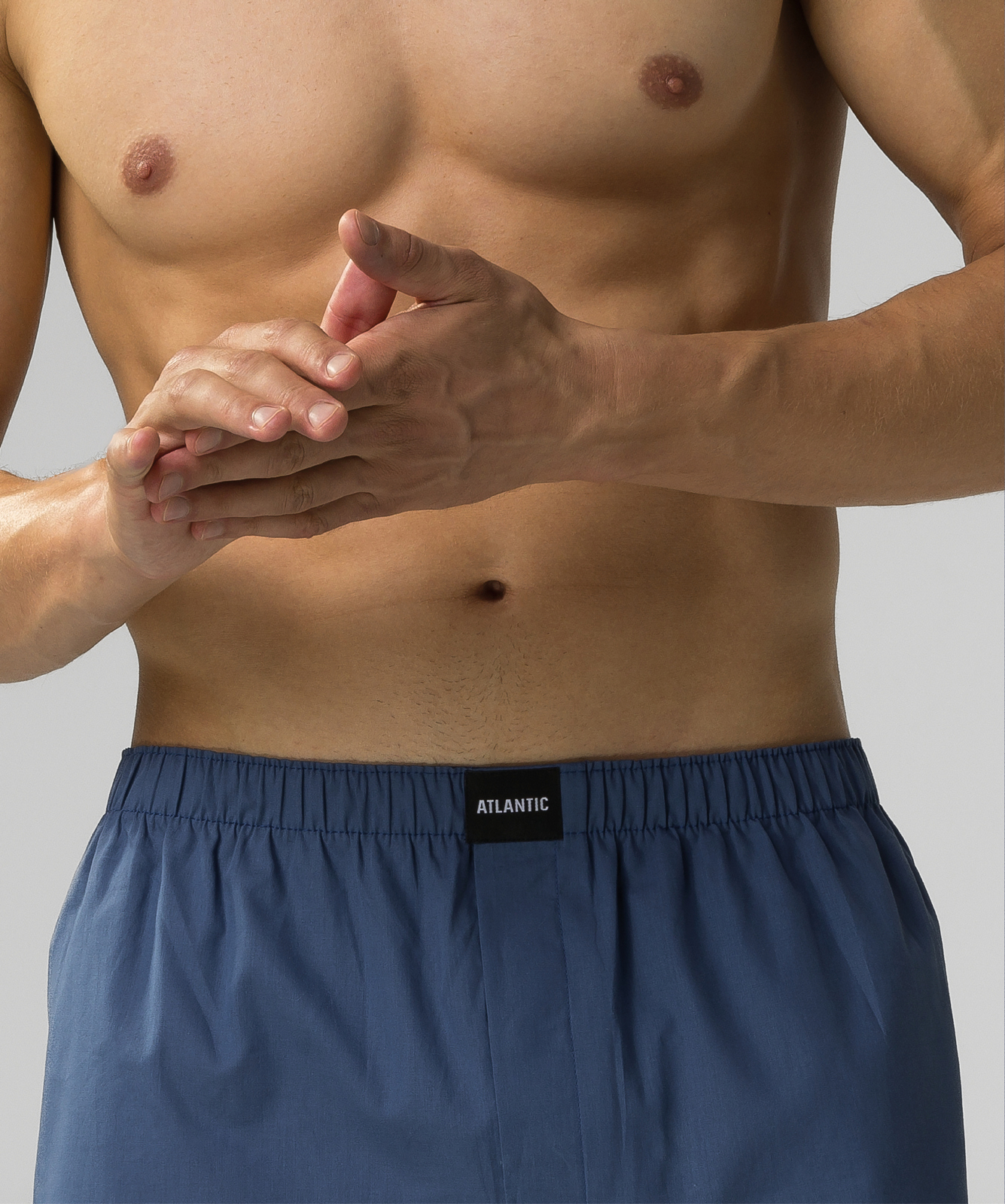 Мужские текстильные трусы-боксеры Atlantic цвета индиго. Мужские тканые трусы-боксеры MBT-003 от польского бренда Atlantic превосходно подойдут абсолютно любому мужчине для повседневной носки на каждый день. Классический свободный крой этой модели гарантирует идеальную посадку по фигуре, свободу движений, максимальный комфорт и отличную воздухопроницаемость. Закрытая пришивная резинка располагается с внутренней стороны - она не давит, не скручивается и не натирает при носке, а также обеспечивает приятные тактильные ощущения для кожи. Свободные мужские боксеры имеют стандартную линию талии и штанины, доходящие до середины бедра, поэтому могут подойти к классическим брюкам или джинсам. По бокам по шву располагаются разрезы для дополнительного удобства во время носки. В составе мужских семейных трусов используется мягкий, приятный на ощупь 100% хлопок. Текстильное хлопковое полотно является прочным материалом, устойчивым к высоким температурам и растяжению, благодаря чему нижнее белье надолго сохраняет свой внешний вид и потребительские свойства. В упаковке представлены одни мужские боксерки в расцветке индиго. Нижнее белье Атлантик будет превосходным подарком для мужчин всех возрастов: молодым парням и подросткам подойдут модели нижнего белья в яркой цветовой гамме и с паттерном или рисунком, более взрослым мужчинам - нижнее белье в сдержанных или строгих цветах, хотя иногда можно нарушить правила и поэкспериментировать. Кроме того, в нашем интернет-магазине Вы сможете приобрести трусы боксеры Атлантик MBT-003 из наличия по самым выгодным ценам. Широкая размерная сетка с самыми популярными (от S до XXL) и большими (3XL, 4XL) размерами, а также стильная фирменная упаковка нашего нижнего белья помогут однозначно сделать Вам верный выбор!