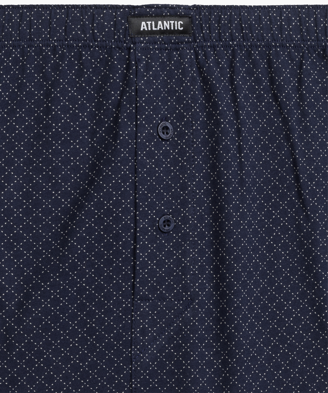 Набор из 2 мужских трусов-боксеров Atlantic 2MBX-073 — комфорт и стиль в повседневной носке. В комплекте две модели мужских семейных трусов в тёмно-синем и голубом цветах с классическим принтом. Свободный крой со стандартной линией талии и удлинёнными штанинами обеспечивает идеальную посадку и свободу движений. Изготовлены из 100% хлопка с мягкой туннельной резинкой — не натирают и не раздражают кожу. Прочный материал сохраняет форму и цвет после множества стирок. Универсальный дизайн подходит для любого возраста, а размерная сетка от S до 4XL — для всех типов фигуры. Стильная упаковка делает набор отличным подарком. Atlantic — качество, проверенное временем.