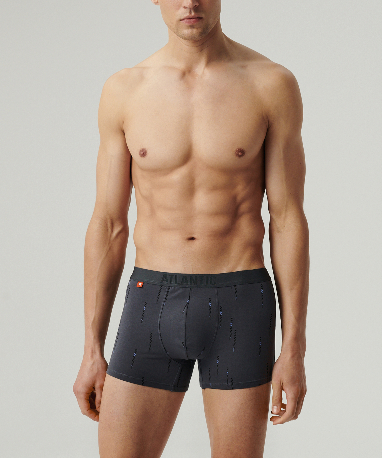 Набор из 3 шт. мужских трусов-шорт Atlantic черные, светло-голубые, графитовые цвета. Мужские однотонные трусы-шорты 3MH-210 от польского бренда Atlantic на каждый день: превосходно подойдут абсолютно любому мужчине как для повседневной носки, так и для активного занятия спортом (например, бега, фитнеса, физических или силовых нагрузок). Анатомически выверенный спортивный крой этой модели гарантирует идеальную посадку по фигуре и максимальный комфорт. Внешняя пришивная резинка не давит, не скручивается и не натирает при носке. Облегающие мужские трусы шорты имеют среднюю линию талии, штанины стандартной длины и профилированный гульфик, поэтому могут подойти к любому типу одежды. В составе используется мягкий, приятный на ощупь хлопок в сочетании с эластаном. Трикотажное хлопковое полотно является прочным материалом, устойчивым к высоким температурам и растяжению, благодаря чему нижнее белье надолго сохраняет свой внешний вид и потребительские свойства. Резинка из микрофибры и объемным названием бренда обеспечивает приятные тактильные ощущения для кожи. Нижнее белье Атлантик будет превосходным подарком для мужчин всех возрастов: молодым парням и подросткам подойдут модели нижнего белья в яркой цветовой гамме и с паттерном или рисунком, более взрослым мужчинам - нижнее белье в сдержанных или строгих цветах, хотя иногда можно нарушить правила и поэкспериментировать. Кроме того, в нашем интернет-магазине Вы сможете приобрести трусы шорты Атлантик 3MH-210 из наличия по самым выгодным ценам. Широкая размерная сетка с самыми популярными (от S до XXL) и большими (3XL, 4XL) размерами, а также стильная фирменная упаковка нашего нижнего белья помогут однозначно сделать Вам верный выбор!