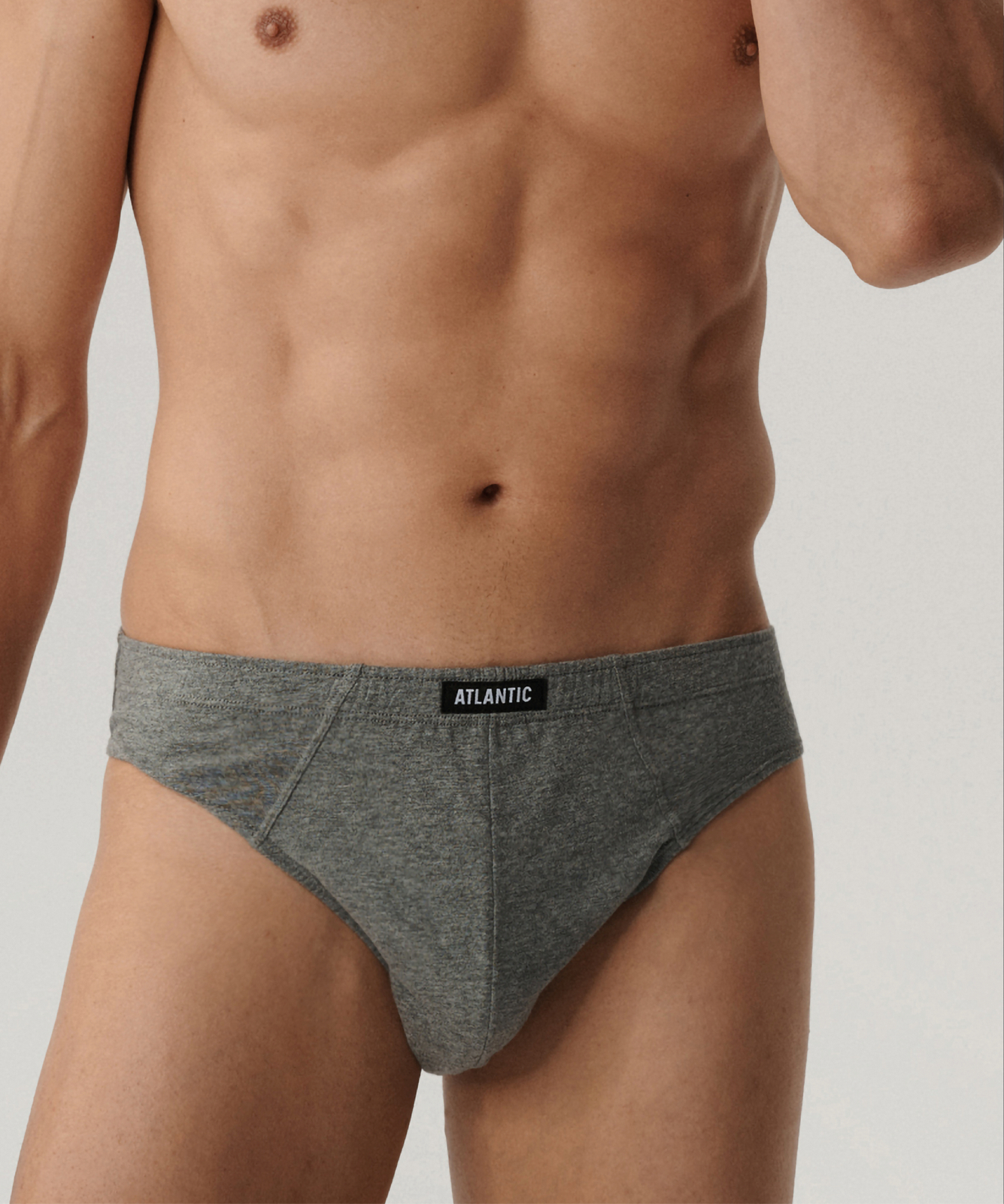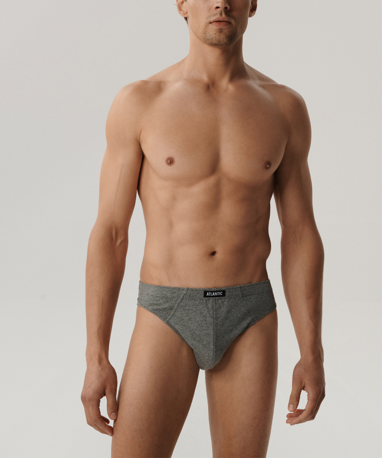 Набор из 3 мужских трусов-слипов Atlantic 3BMP-322 из базовой коллекции Basic — три универсальных оттенка: серый меланж, тёмно-серый меланж и классический чёрный. Модель с анатомическим кроем и слегка заниженной линией талии обеспечивает идеальную посадку и комфорт для повседневной носки и активного образа жизни. Скрытая туннельная резинка исключает давление и натирание. Натуральный 100% хлопок гарантирует мягкость, воздухопроницаемость и долговечность, сохраняя форму после множества стирок. Универсальная цветовая гамма легко сочетается с любым стилем одежды и послужит отличным дополнением вашего базового гардероба. Стильная фирменная упаковка делает набор практичным подарком. Доступны размеры от S до 4XL. Atlantic — проверенное качество и комфорт в каждой детали.