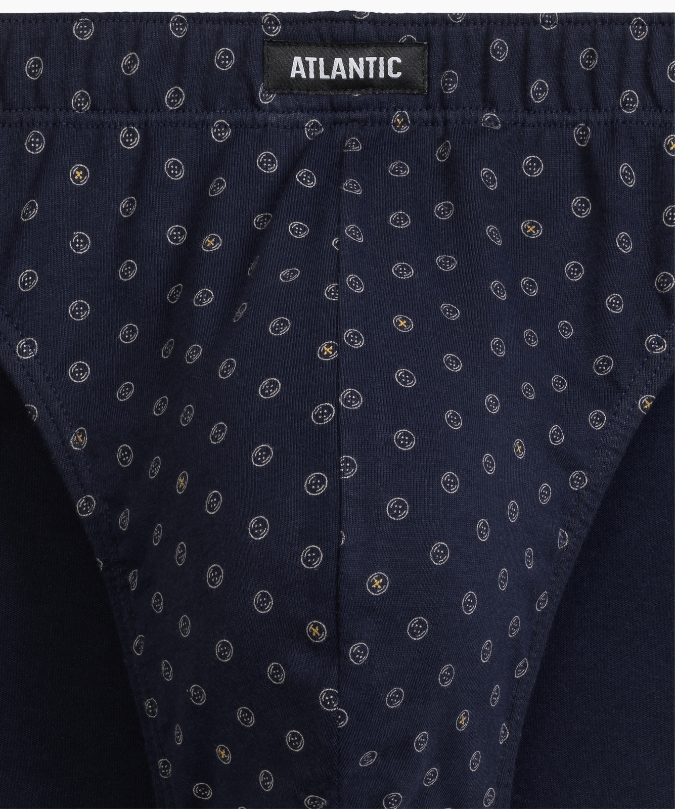 Набор из 3 мужских трусов-слипов Atlantic 3MP-198 — комфорт в трёх оттенках синего. В комплекте три модели: тёмно-синяя, голубая и тёмно-голубая, включая однотонный вариант и стильные принты. Анатомический крой со слегка заниженной талией и скрытой резинкой обеспечивает идеальную посадку без дискомфорта. Мягкий 100% хлопок гарантирует комфорт при ежедневной носке, сохраняя форму после множества стирок. Универсальный дизайн подходит мужчинам любого возраста. Размеры от S до 4XL позволяют подобрать идеальный вариант. Стильная упаковка делает комплект отличным подарком. Atlantic 3MP-198 — разумный выбор для тех, кто ценит качество и удобство.
