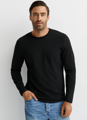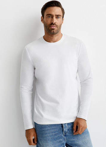 Мужской лонгслив прямого кроя с длинными рукавами и круглым вырезом горловины. Изготовлен из тактильно приятного хлопка с эластаном, который отлично пропускает воздух, приятно ощущается на теле и подходит даже для самой чувствительной кожи. 92% CO/ 8% EA