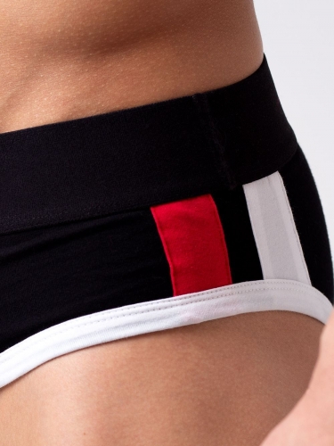 95% хлопок, 5% эластанМужские трусы-слип с «секретом» - внутренним карманом, имеющим съёмный формованный вкладыш. Эта конструкция способствует тому, чтобы джинсы или брюки сидели безупречно, а также обеспечивает оптимальный комфорт. Широкий эластичный пояс имеет логотип спереди и сзади, что выигрышно смотрится с любого ракурса. Эти уникальные слипы выполнены в черном цвете с отделкой контрастными лампасами и кантом.