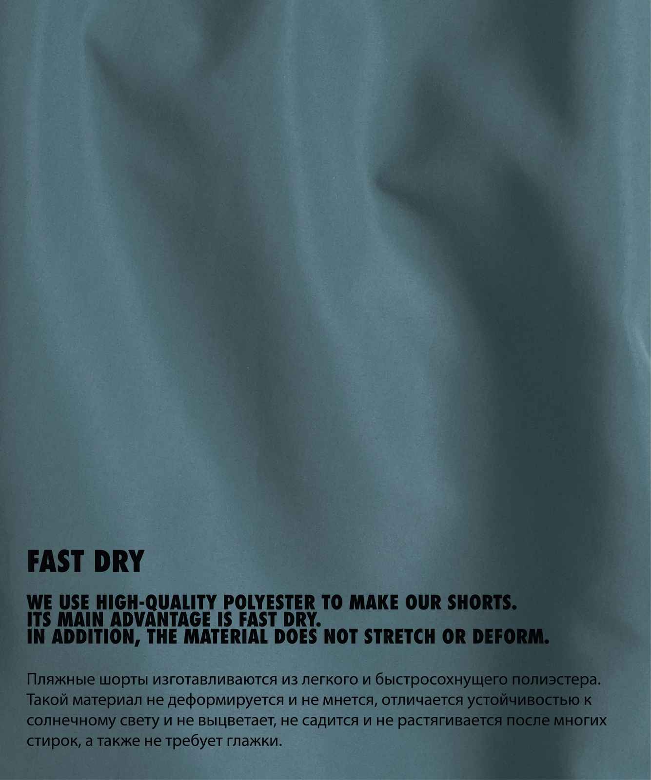 Полиэстер – это высокопрочное, приятное на ощупь, легкое синтетическое волокно, которое не деформируется и не мнется. Изделия из полиэстера после стирок не садятся и не растягиваются, а также быстро сохнут и практически не требуют глажки после стирки. Эта ткань отличается устойчивостью к солнечному свету и не выцветает.