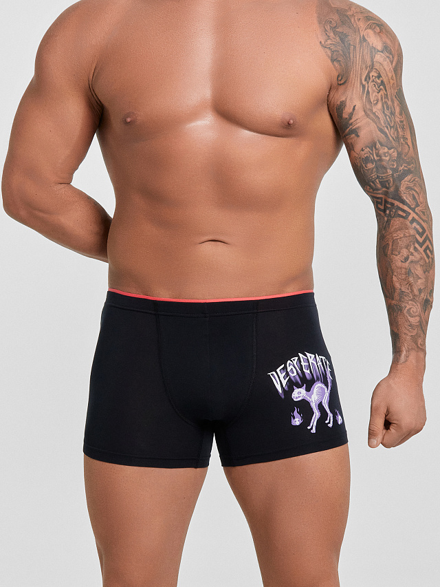 Трусы боксеры мужские черные с принтом