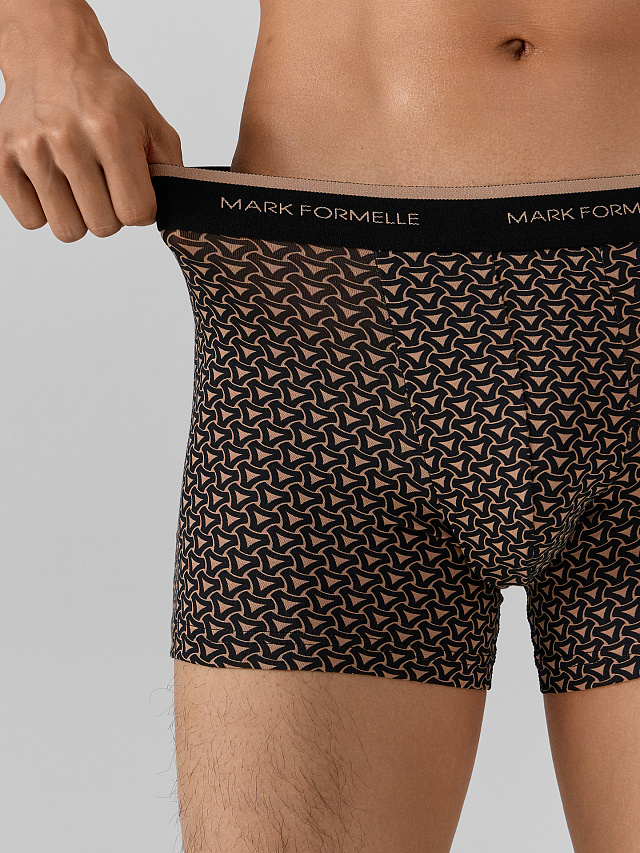 Черные мужские трусы-боксеры с узором — идеальное сочетание комфорта и стиля. Модель облегающего силуэта без боковых швов выполнена из мягкой хлопковой кулирки.