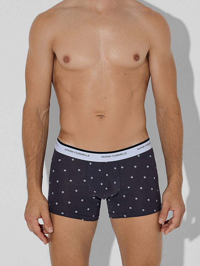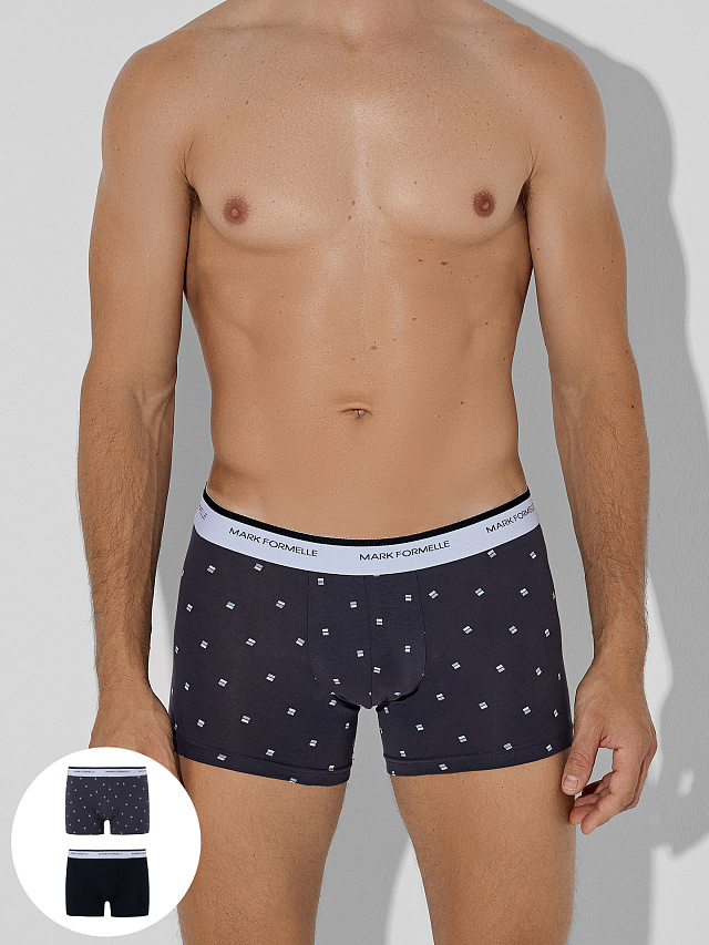 Набор из двух мужских трусов-боксеров в сером с узором и классическом черном цвете — это практичное решение для повседневного комфорта. Каждая пара выполнена из мягкой хлопковой кулирки, которая обеспечивает приятное прилегание и хорошую воздухопроницаемость в течение всего дня.
