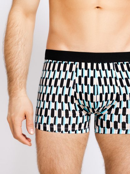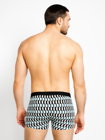 Оптовая продажа. Трусы-боксеры (шорты) с графичным принтом и жаккардовой резинкой с логотипом по поясу.