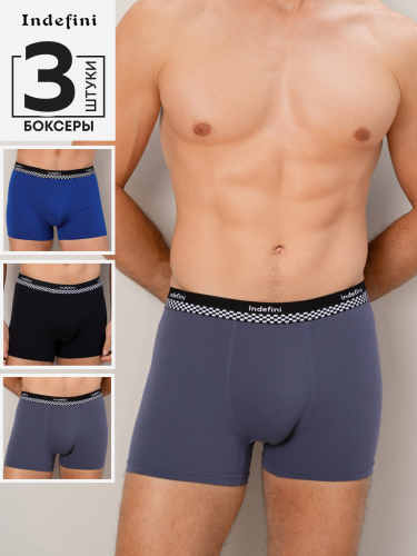 Комплект из трех классических мужских трусов в базовых цветах, изготовленных из комбинированного материала — хлопка и бамбукового волокна для повышенной мягкости и воздухопроницаемости.