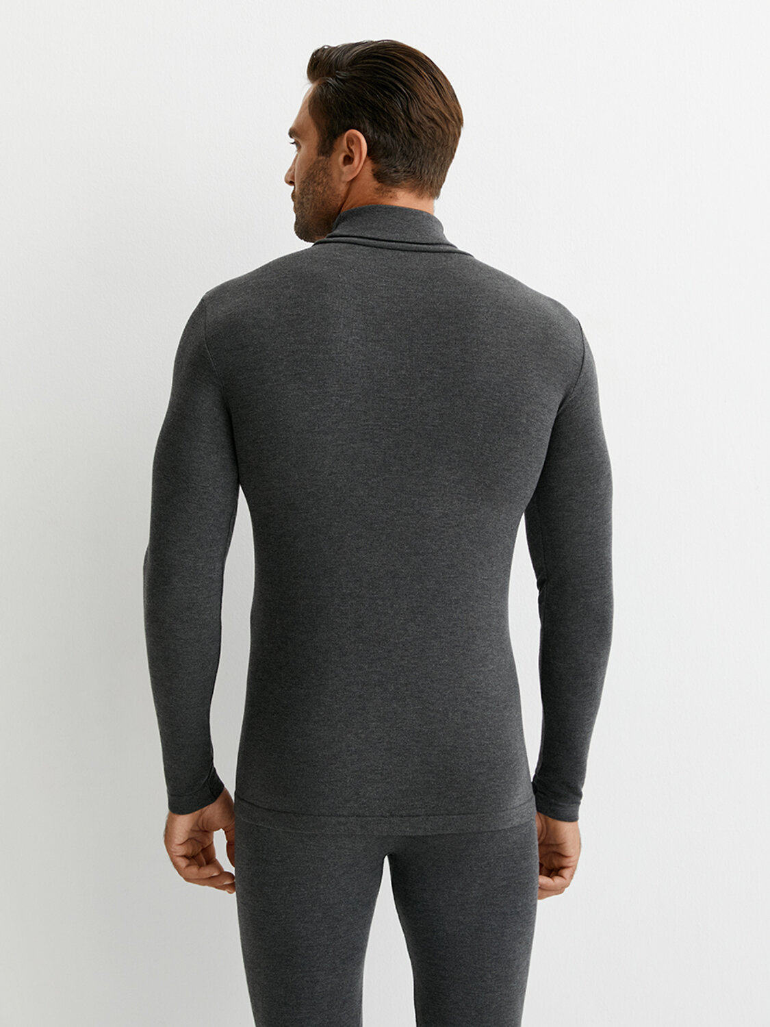 Бесшовная мужская водолазка модель "Термо" с воротником с отворотом, длинным рукавом и терморегулирующим эффектом.
