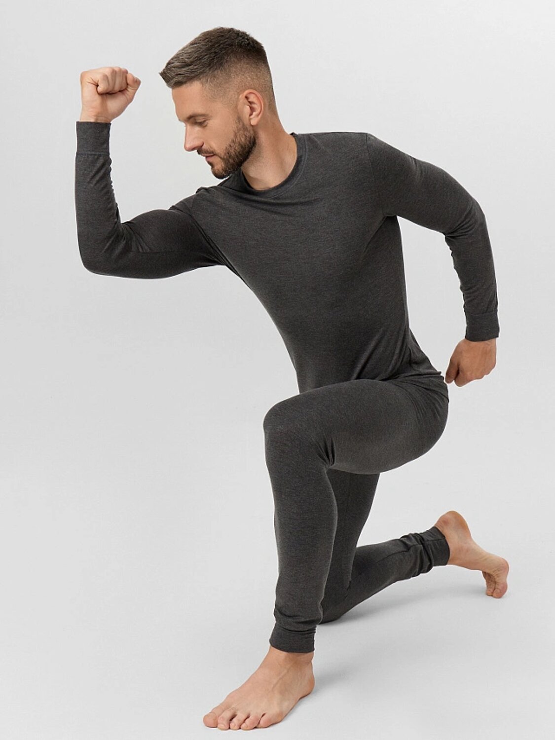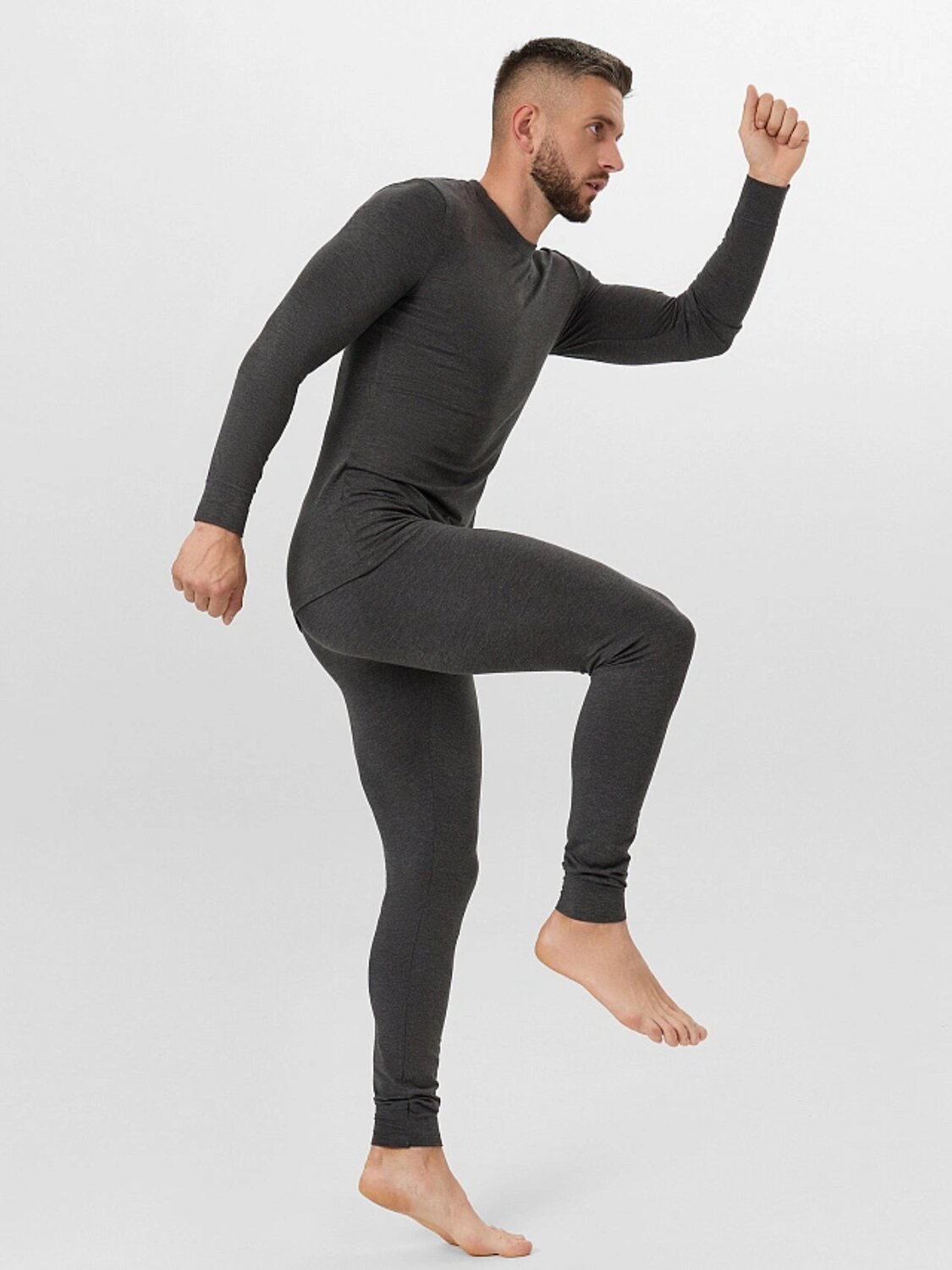 Серый мужской термо-комплект — это технологичный уют для зимы. Набор состоит из полуприлегающего джемпера и облегающих брюк, которые сохраняют тепло даже при -30°C. Японская технология с микроакрилом создает воздушные прослойки между волокнами, как натуральная шерсть, но без лишнего объема.