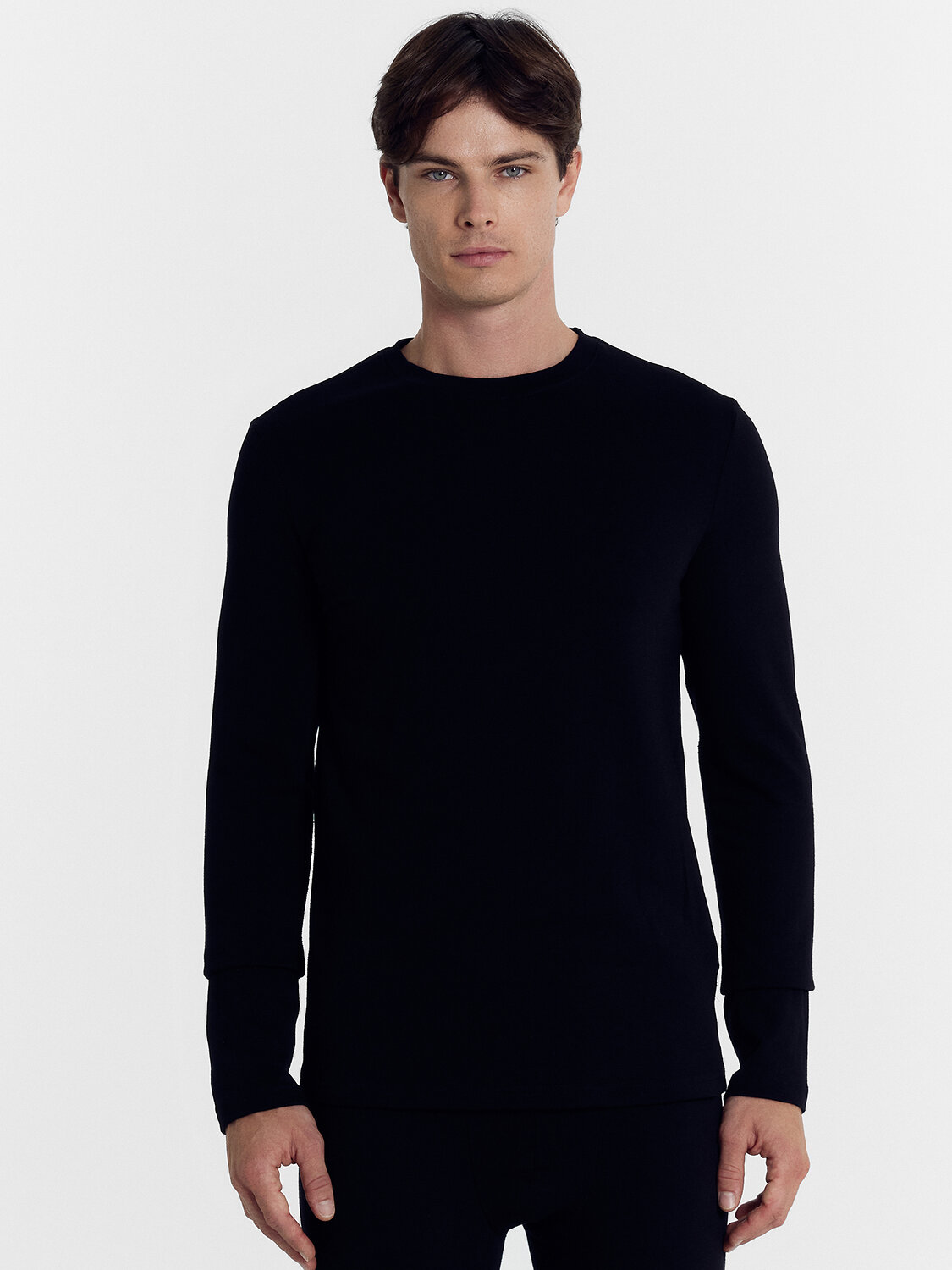 Фуфайка мужская на базе 721466 для спорта и отдыха изготовлен из трикотажного полотна-ЭКО-хлопок с эластаном (теплое белье). Силуэт прямой. Длина до середины бедер. Горловина с притачной обтачкой. По горловине проложена декоративная строчка на 0,2 мм (по изделию).