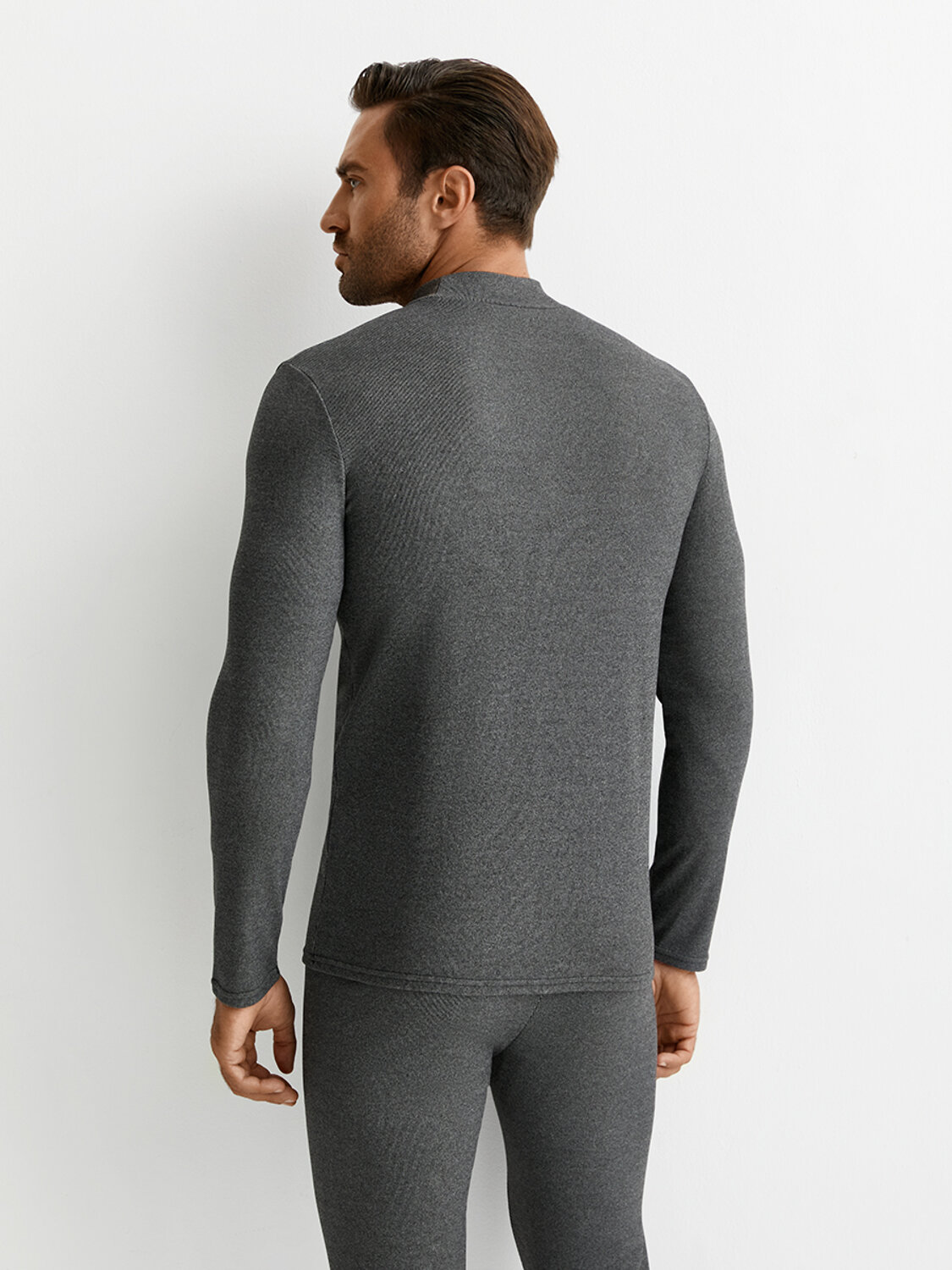 Облегающий мужской лонгслив модель "Термо" в рубчик с воротником - стойкой, длинным рукавом и терморегулирующим эффектом.