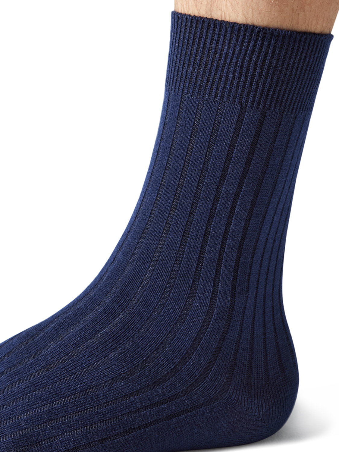 Классические мужские носки в рубчик. Шерсть в составе отлично сохраняет тепло и пропускает воздух, обеспечивая естественную терморегуляцию. Акрил усиливает теплосберегающие свойства, помогает сохранять форму и насыщенность цвета даже после многократных стирок. Полиэстер дополнительно способствует удержанию тепла, а эластан обеспечивает превосходное облегание.