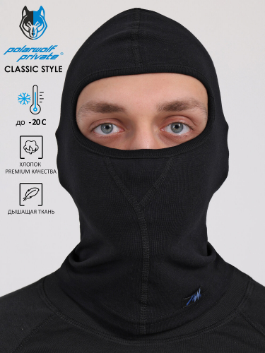 Балаклава выполнена из эластичного хлопкового полотна. Приятная к телу, легко впитывает влагу, позволяя коже "дышать". Специальный крой изделия позволяет защитить верхние дыхательные пути и кожу лица от ветра и мороза. Подходит для ежедневного использования в качестве нательного белья в холодную погоду до -20 градусов при низкой физической активности. Уход: деликатная машинная стирка при температуре до 40 градусов без предварительного замачивания.
