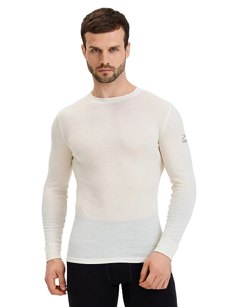 Термобелье футболка (термофуфайка) мужская с длинным рукавом серии SOFT. Знак Woolmark, цвет молочный