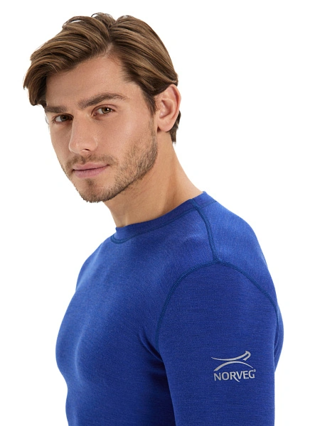 Термобелье футболка (термофуфайка) мужская с длинным рукавом серии SOFT. Знак Woolmark, цвет синий