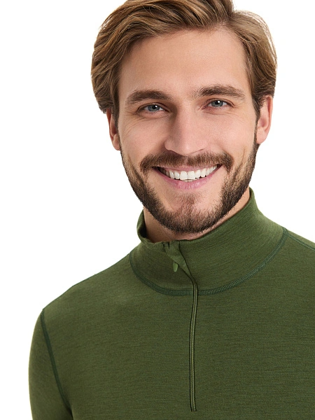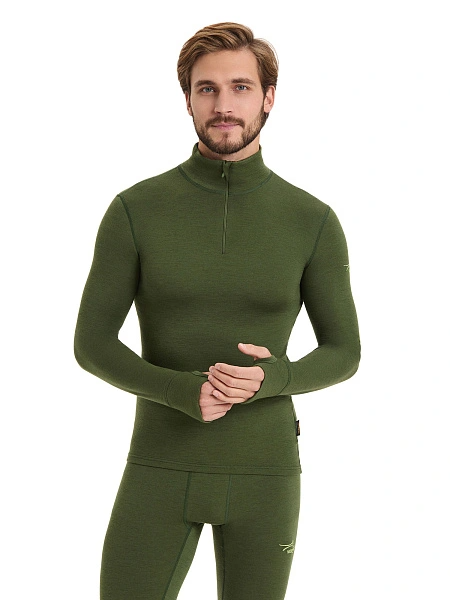 Термофуфайка мужская (футболка) с высоким воротом на молнии для охоты и рыбалки серии HUNTER, цвет хаки