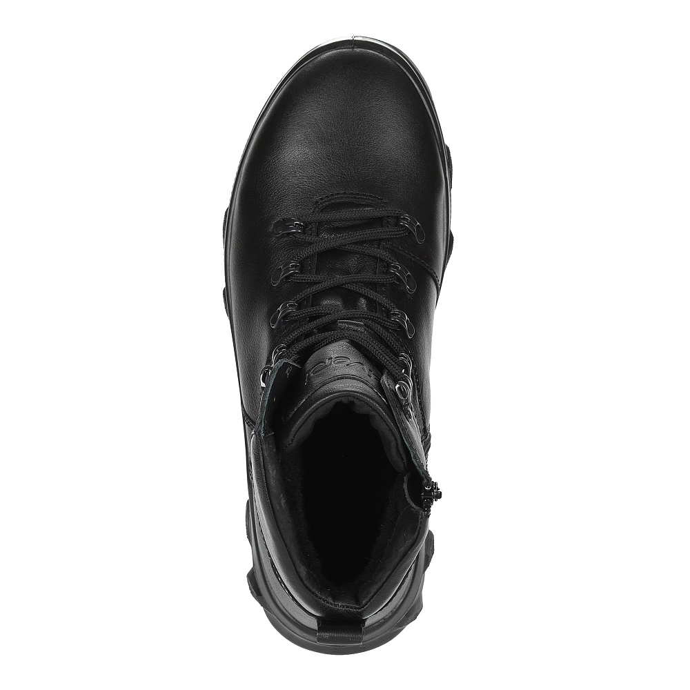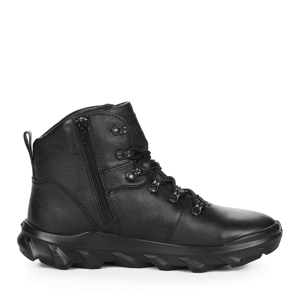 Зимние мужские ботинки черного цвета. Верх модели выполнен из качественной натуральной кожи. Рант и носок дополнительно усилены. Подкладка и стелька утеплены натуральным мехом. Мощная двухсоставная подошва из ПУ и ТПУ с глубоким протектором обеспечивает надежное сцепление со снегом и льдом.