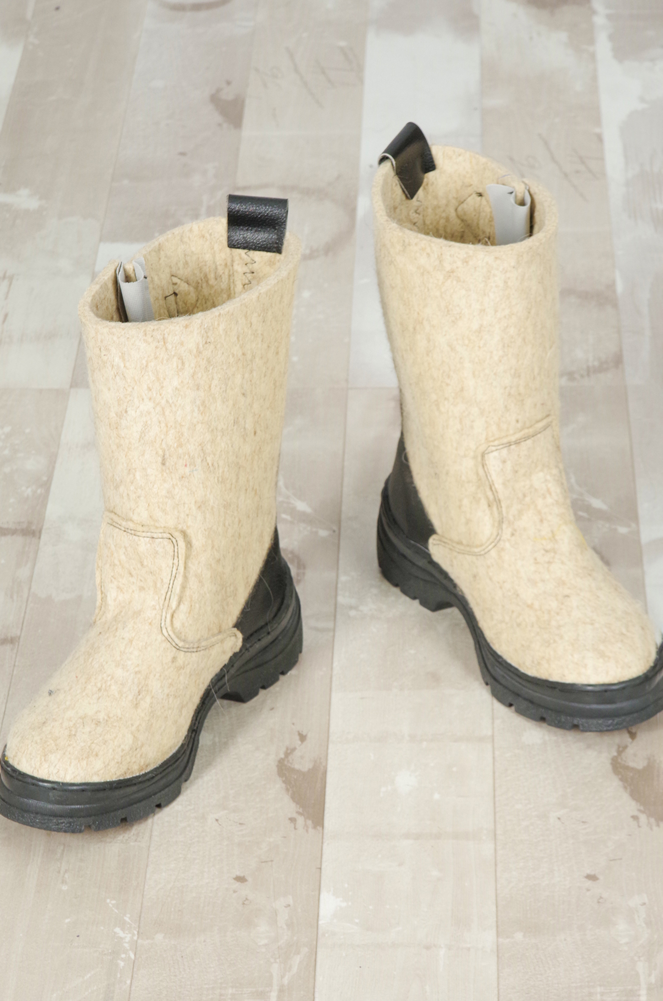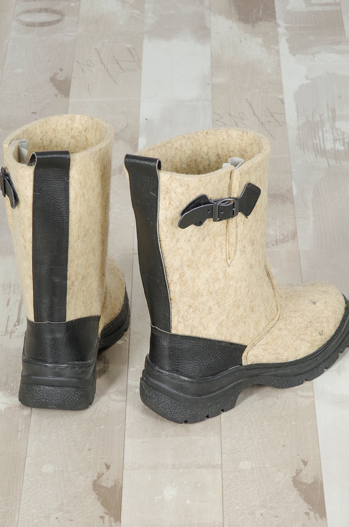 Тёплые зимние сапоги "Полярник" из тонкошёрстного войлока, толщиной 6мм. Голенище регулируется, высота 31 см, на пятке сзади вставка из юфть-кирзы. Подошва ТЭП, клеепрошивная.